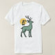 Cute flat deer holding glowing yellow lantern – cozy cottagecore night walk on black.