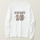 Un dulce deportivo rosado y marrón lindo 16 del estilo del jersey flanqueado por dos estrellas en el camisetas femenino del dulce dieciséis, la ropa, la ropa, las décimosextas fuentes de la fiesta de cumpleaños, los regalos, los favores y los recuerdos un adolescente está seguro de amar en su décimosexto cumpleaños.