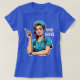 Un ilustracion vibrante de una enfermera segura de sí misma que sostiene una jeringa, con la frase "Enfermeras dan los mejores zapatos", celebrando el papel vital de las enfermeras en la atención médica.