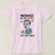 Este divertido diseño de camisetas está hecho para los que no les gustan las primeras mañanas. El diseño consiste en un ilustracion de vampiros gruñón al estilo de doodle acompañado por el texto "Las mañanas son como vampiros. ¡Los dos apestan!". Esta camiseta también es una buena candidata a regalo de Halloween.