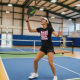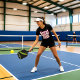 Camiseta divertida para damas de pickleball con un enorme eslogan rosa y blanco Las grandes mentes se ríen por igual ¡Feliz desgaste y mejores deseos para tus futuros juegos!
