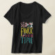 Camiseta con cuello en V de mujer, Negro, XL de adulto