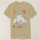 El color es muy bonito al natural, como la foto. El tejido es suave y de buena calidad. Sin defectos en el tintado, ni hilos sueltos o descosidos. Bien la impresión. Los bordes de las letras y el dibujo son nítidos, y el color contrasta muy bien con el de la camiseta.