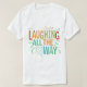 El diseño de la camiseta muestra el texto "Riéndose todo el camino" en un divertido y vibrante esquema multicolor. Cada palabra puede ser de un color alegre diferente, reflejando el mensaje alegre y positivo. Este diseño es perfecto para alguien que disfruta del viaje de la vida y encuentra humor en el camino.