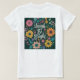 A geometric design with the text "Laughter Be Bright" in a gradient of colors, creating a modern and stylish look for a women's t-shirt.