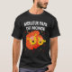 El color es muy bonito al natural, como la foto. El tejido es suave y de buena calidad. Sin defectos en el tintado, ni hilos sueltos o descosidos. Bien la impresión. Los bordes de las letras y el dibujo son nítidos, y el color contrasta muy bien con el de la camiseta.