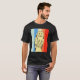 El color es muy bonito al natural, como la foto. El tejido es suave y de buena calidad. Sin defectos en el tintado, ni hilos sueltos o descosidos. Bien la impresión. Los bordes de las letras y el dibujo son nítidos, y el color contrasta muy bien con el de la camiseta.