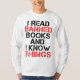 Leí Libros Prohibidos y sé las cosas que te cuelgan la camiseta o el Nerd del libro en tu vida. Si te gusta leer libros y has pensado o dicho "Leí libros prohibidos". Después esta "Leer la camiseta de la protesta de la semana de los libros prohibidos" es una idea de regalo grandiosa y asequible para la Semana de los Libros Prohibidos Cumpleaños, Navidades o cualquier día para los amantes de los libros, niños, adultos así como profesores de inglés y literatura