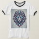 Este diseño de vanguardia muestra un león geométrico infundido con elementos holográficos, simbolizando fuerza y modernidad. Sus formas angulares y sus brillantes tonos azules, púrpura y plateados crean una fascinante estética de alta tecnología. El diseño es atrevido pero elegante, con un fondo claro y degradado, perfecto para hacer una declaración en cualquier camiseta.