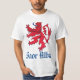 Una camiseta para los partidarios escoceses de la independencia. El ilustracion está del símbolo desenfrenado del león con el cuerpo rojo, amarillo observa, lengua azul y las garras que se colocan en las piernas traseras con las patas contrapesadas para pegar. Abajo está el lema Saor Alba, gaélico escocés gratis Escocia, en letras azules clásicas. Usted puede cambiar las palabras, el estilo y el color de la fuente para adaptarse con el botón del personalizar.