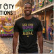 Get ready to celebrate Fat Tuesday in style with this festive design! This shirt features the classic New Orleans phrase "Let The Good Times Roll" in a bold, retro font with a faux-glitter texture in traditional Mardi Gras colors: purple, green, and gold. Accented with a classic Fleur-de-lis, this design captures the spirit of the French Quarter.