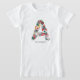 Camisas monográficas de letras florales caprichosas, festivas y elegantes con flores en follaje rojo, verde, dorado y gris. Hay otros colores y letras disponibles. Letra A