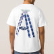 Letra inicial A hecha con imágenes de guijarros de zafiros en corte rectangular, corte de peras y corte marquesa, dentro del corte trapezoide central y adornos cortados de fantasía en el gran zafiro marquesa, acentuado con una flor blanca en la parte superior de la letra A. Sapphire es la piedra de nacimiento de septiembre. El azul es el color del Throat Chakra.