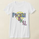 Pickleball tee. Mujeres. Cada carta tiene su propio doodle divertido. Fondo de la bola. Diseño original.