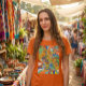 El color es muy bonito al natural, como la foto. El tejido es suave y de buena calidad. Sin defectos en el tintado, ni hilos sueltos o descosidos. Bien la impresión. Los bordes de las letras y el dibujo son nítidos, y el color contrasta muy bien con el de la camiseta.