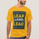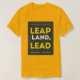 La camiseta "Leap, Land, Lead" presenta una frase motivadora diseñada para inspirar acción y progreso. El texto "Salto, tierra, plomo" se muestra típicamente en un tipo de letra audaz y dinámico, enfatizando la idea de dar pasos audaces (Salto), lograr sus objetivos (Tierra) y guiar a otros (Plomo).