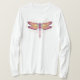 Arte gráfico caprichoso que ofrece una libélula que asoma sobre un modelo de remolinos y de giros.
