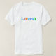 Quería usar una camiseta que aconseja calladamente a la gente que tengo valores democráticos liberales. Esta camisa hace justamente eso, en la generosa cara Cooper Black al estilo de los años 70 con cada letra de un color diferente, ¡incluido un patrón de bandera estadounidense para la letra "i"! ¡Levántate por lo que crees, por el planeta, por la humanidad, por la paz y por llevarse bien con una camiseta liberal!