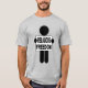Este diseño muestra a un manifestante sosteniendo un cartel de libertad religiosa.