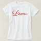 Esta camiseta sexy tiene la palabra "libertina" con letras rojas. Un gran regalo para tu dama (o agente) favorita con una moralidad laxa y una virtud fácil