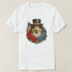 A refined patriotic illustration featuring a dignified, long-haired collie dog gazing forward with quiet authority. The dog wears a vintage top hat adorned with subtle stars, a red-and-white band, and a brass medallion, evoking classic Americana with Victorian elegance. Soft red and blue roses form a lush floral wreath around the dog’s face, their petals weaving gently through flowing fur. A small American flag rises proudly to one side, symbolizing heritage, honor, and timeless national pride.