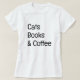 Este es un diseño de Cats Books y Coffee Lover de una sencilla camiseta blanca.