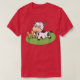 El color es muy bonito al natural, como la foto. El tejido es suave y de buena calidad. Sin defectos en el tintado, ni hilos sueltos o descosidos. Bien la impresión. Los bordes de las letras y el dibujo son nítidos, y el color contrasta muy bien con el de la camiseta.