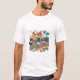 El diseño de la camiseta incluye la frase "Limitaciones de breves valentía" en letras vibrantes de varios colores, ambientadas con un fondo dinámico y abstracto. El diseño transmite un poderoso mensaje de superación de obstáculos y logro de sus objetivos a través del coraje y la perseverancia.