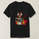 Esta camiseta contiene un personaje de dibujos animados lindo. Taucoo es un mapache que juega como pirata, con un par de oídos de conejo largos, llevando una capilla rojo oscuro que tenga un cráneo y una travesía de cuchillos y de espadas en él. Su piel es gris. Hay varios anillos negros en su cola larga y grande. Él es enojado y con una catapulta y que apunta una blanco. ¡Especialmente, él tiene una máscara negra fresca! ¡Y él se está lamiendo la lengua, muy traviesa! el fondo es fuego.