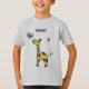 Camiseta con tierna jirafa en naranja amarillo con un pájaro y una abeja. Se puede personalizar el nombre, el tipo de letra, el tamaño y la posición, el texto es totalmente editable. También puede cambiar el tamaño de la imagen.
