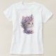 Camiseta Lindo Gato de Acuarela Violeta con Flora