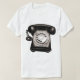Una camiseta con un gran motivo de teléfono en blanco y negro de tono cálido.