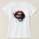 This tee has large red lips on it with black lace and bats on them. There is fluid running from the lips in dribbles.