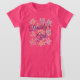 Camiseta florida con coral rosa brillante e impresión floral violeta. El texto del chica de papá puede ser personalizado a cualquier mensaje. El texto o la imagen de flor son extraíbles.