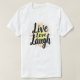 La imagen muestra la frase "Live Love Laugh" escrita en negritas cursivas negras. El texto se coloca sobre un fondo vibrante con un centro amarillo y ramas coloridas radiantes en tonos rosas, naranjas y amarillos, que se parecen a una ráfaga de luz o fuegos artificiales. El diseño general es alegre y edificante, transmitiendo un mensaje positivo y motivacional.