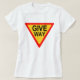 Un fresco "lleva" camiseta de la señal de tráfico con el gráfico anaranjado y rojo con el texto negro. Elija de muchos diversos estilos, tamaños y colores. Para las señoras, los señores y los niños. Disponible en colores ligeros y oscuros.