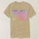 El color es muy bonito al natural, como la foto. El tejido es suave y de buena calidad. Sin defectos en el tintado, ni hilos sueltos o descosidos. Bien la impresión. Los bordes de las letras y el dibujo son nítidos, y el color contrasta muy bien con el de la camiseta.