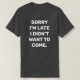 Lo siento, llego tarde. No quería venir. Siente a tus compañeros de trabajo o compañeros con esta camisa.