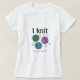 Lo tejí, así que no te mataré - es una camiseta blanca decorada con un dibujo original de tres bolas de hilo (rosa, verde y azul) con un par de agujas de punto. Es una camiseta con humor para cualquiera que sepa.