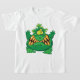 Un monstruo verde loco tratando de parecer aterrador. Este diseño se ve realmente efectivo en esta camiseta para niños