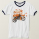 El color es muy bonito al natural, como la foto. El tejido es suave y de buena calidad. Sin defectos en el tintado, ni hilos sueltos o descosidos. Bien la impresión. Los bordes de las letras y el dibujo son nítidos, y el color contrasta muy bien con el de la camiseta.
