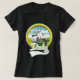 El color es muy bonito al natural, como la foto. El tejido es suave y de buena calidad. Sin defectos en el tintado, ni hilos sueltos o descosidos. Bien la impresión. Los bordes de las letras y el dibujo son nítidos, y el color contrasta muy bien con el de la camiseta.