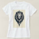 Logotipo de León Geométrico: La característica principal de esta camiseta es el logo estilizado de la cabeza de león, hecho enteramente de formas geométricas como triángulos, polígonos y líneas. Este enfoque le da al león una apariencia moderna, angular y abstracta, enfatizando fuerza, coraje y confianza. Trabajo de línea y sombreado: La forma y las características faciales del león se forman con líneas limpias, intersectadas y bordes afilados, creando profundidad a través de sombreado y contraste de color. Este aspecto facético hace que el diseño parezca casi tridimensional.