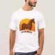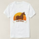 Resumen de ilustracion de caballos con tonos cálidos y amanecer, con un estilo circular, con una etiqueta de cartel de texto.