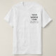 Logotipo comercial y camiseta del empleado de la empresa de texto con marca. Logo y texto de la empresa personalizado. Camiseta promocional con logotipo sencillo y comercio de texto.
