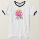 El color es muy bonito al natural, como la foto. El tejido es suave y de buena calidad. Sin defectos en el tintado, ni hilos sueltos o descosidos. Bien la impresión. Los bordes de las letras y el dibujo son nítidos, y el color contrasta muy bien con el de la camiseta.