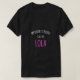 El color es muy bonito al natural, como la foto. El tejido es suave y de buena calidad. Sin defectos en el tintado, ni hilos sueltos o descosidos. Bien la impresión. Los bordes de las letras y el dibujo son nítidos, y el color contrasta muy bien con el de la camiseta.