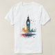Un design abstrait, inspiré de l'art moderne, met en valeur la silhouette de Big Ben, soulignée de formes géométriques et de touches de couleurs vives parsemées sur la tour. Le ciel dégradé est remplacé par des aplats de couleurs dans un style pop art, conférant au design une allure dynamique. Des représentations abstraites de la Tamise sont suggérées par des lignes ondulées et des formes irrégulières à gauche, tandis que les pavés à la base sont minimalistes et anguleux. Le mot « LONDON » s'affiche en bas au centre, dans une police nette et sans empattement, à l'aspect superposé, sur un transparant.