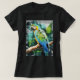Representación en 3D de una pintura acuarela de un loro de Macaw con plumas verdes y azules brillantes. El loro está encaramado en una rama. El fondo es blanco y aislado. Hay algunas manchas de pintura alrededor del loro.