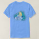 El color es muy bonito al natural, como la foto. El tejido es suave y de buena calidad. Sin defectos en el tintado, ni hilos sueltos o descosidos. Bien la impresión. Los bordes de las letras y el dibujo son nítidos, y el color contrasta muy bien con el de la camiseta.
